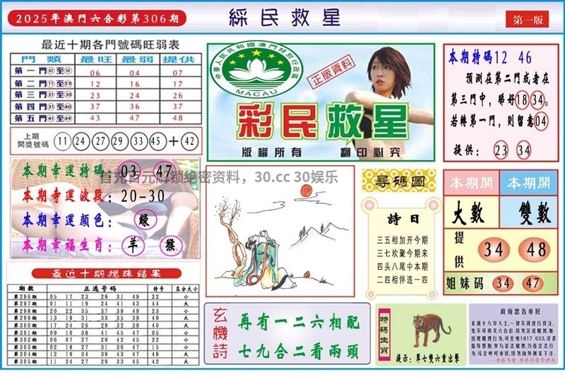 | 306期:♣【绝杀两尾】♣【3.4尾】开:牛17准 |